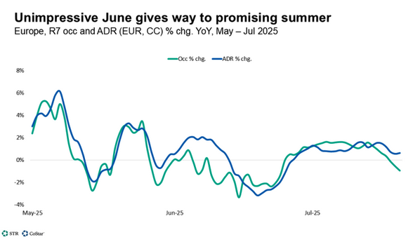 The absence of major events that boosted hotel performance in 2024, such as the Champions League final and the UEFA Euros tournament, contributed to the RevPAR declines in June 2025. However, the start of the European summer holiday season in July is expected to improve hotel performance across the continent.