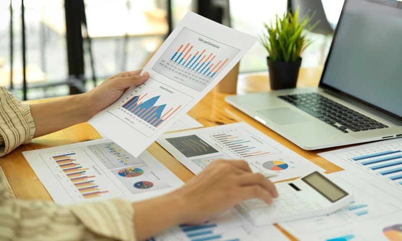 • A person reviewing reports