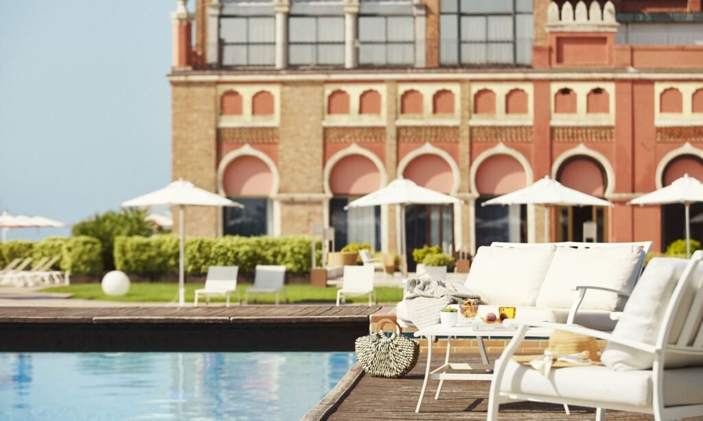 The landmark property on Lido Island has functioned as a beachfront retreat since 1908. It is known for its Moorish architecture and long-standing association with the Venice International Film Festival, which held its first edition on the hotel terrace in 1932.