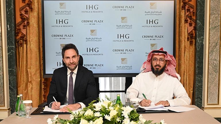IHG Hotels & Resorts has signed an agreement to open Crowne Plaza Madinah Al Haramain in partnership with Arbah Tayba Real Estate Company. The 383-room hotel is scheduled to open in 2026 and will be located opposite the new Haramain high-speed railway station in Madinah, Saudi Arabia.