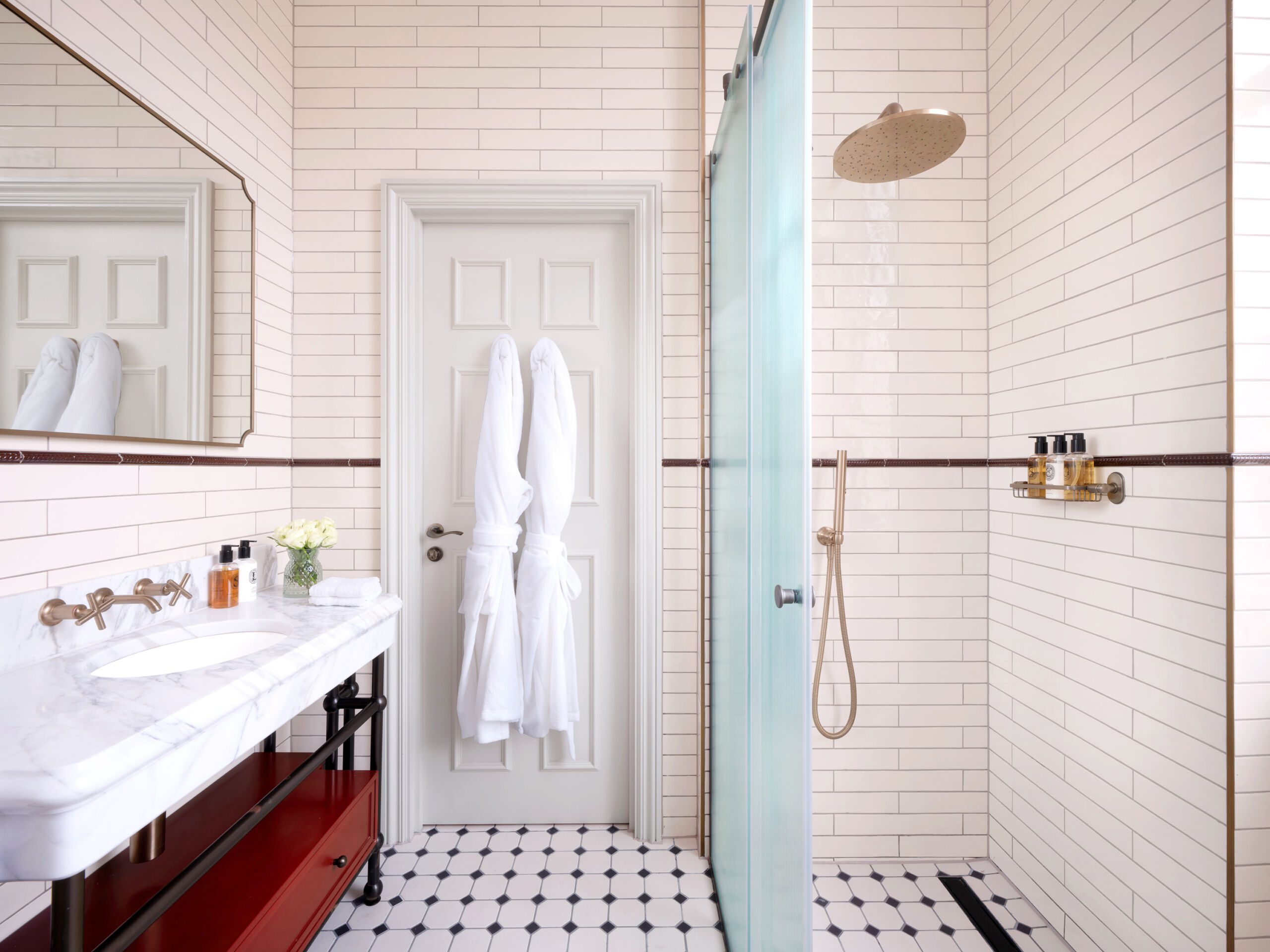 The 43 bedrooms include heritage fixtures such as original cornicing and decorative fireplaces alongside modern furnishings. Broadleaf timber flooring, Chelsom lighting and Ege carpets are used throughout, alongside Kohler brassware within the bathrooms.