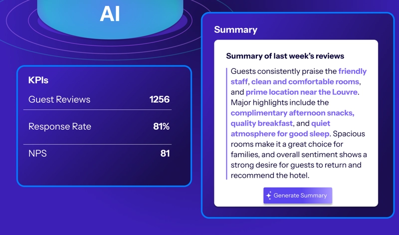 Hotels that use this feature save hours every week while staying more aligned and proactive. They’re no longer guessing what guests think because, with SummaryAI, they know.